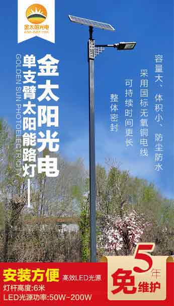 黑龍江金太陽(yáng)光電自主研發(fā)設(shè)計(jì)的新款太陽(yáng)能路燈上市,歡迎新老客戶前來淺談業(yè)務(wù)。